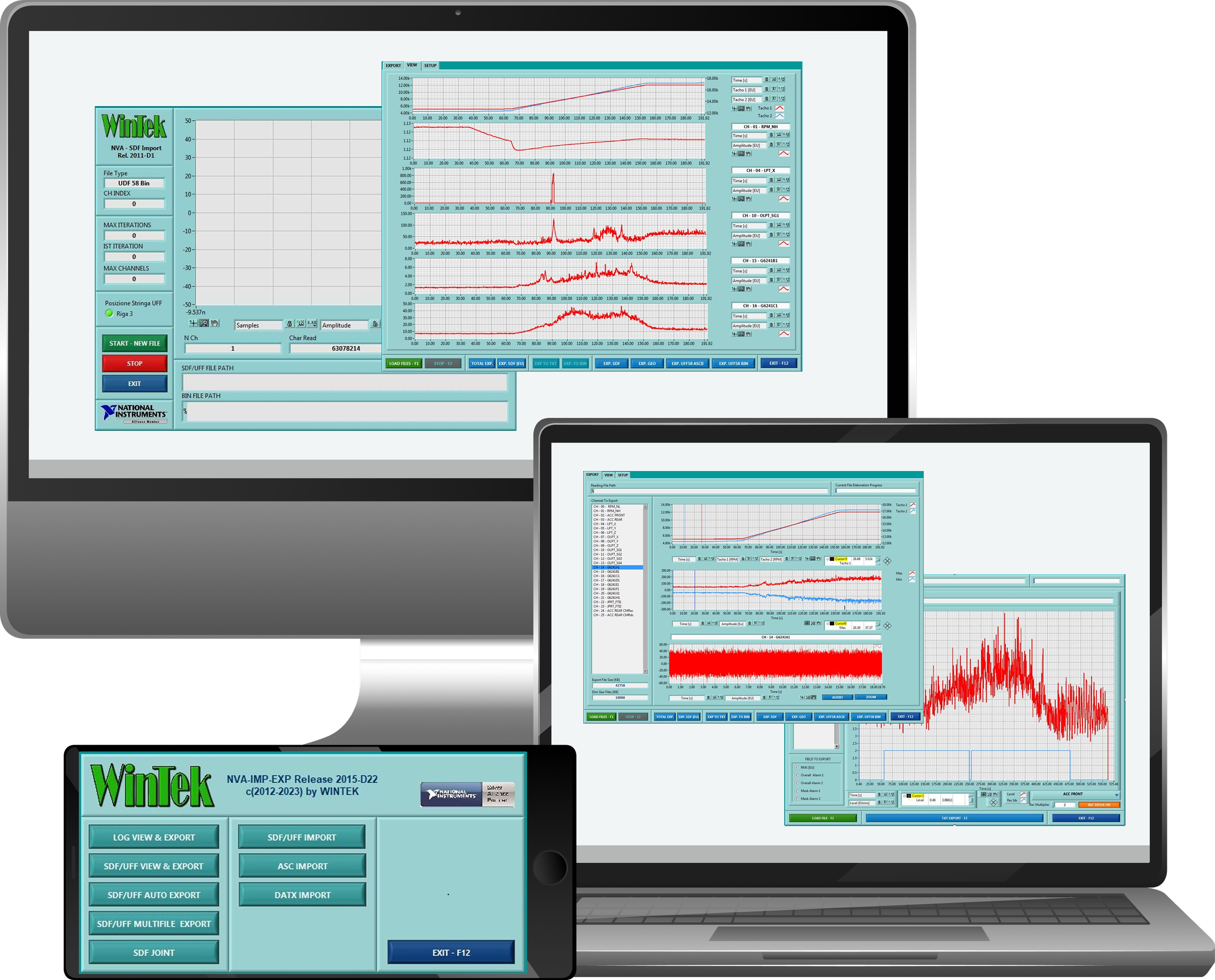 Il modulo NVA Import/Export è la soluzione Wintek dedicata alla gestione dei dati di acquisizione, alla conversione tra formati standard di settore e alla visualizzazione immediata dei segnali registrati dai sistemi NVA/NVT.